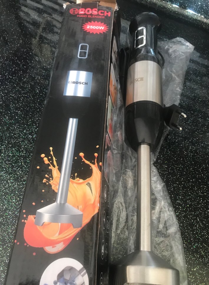 2500W güçlü motora sahip Bosch el blenderı, siyah renkli şık tasarımıyla verimli karıştırma sağlar.