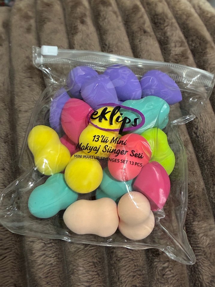 Pastel renkte 13 mini makyaj süngeri içeren set, pürüzsüz ve eşit uygulama sağlar. Şeffaf fermuarlı poşette saklanabilir.