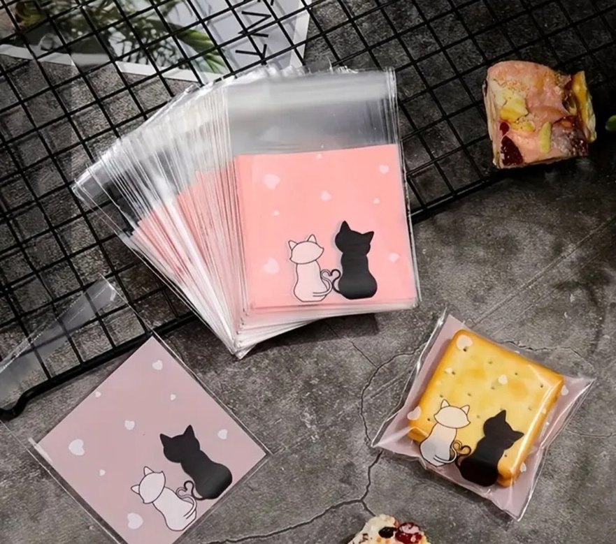 25 li Paket 10*7 cm pembe renkli, siyah ve beyaz kedi desenli küçük poşetler, küçük eşyalar için uygundur.