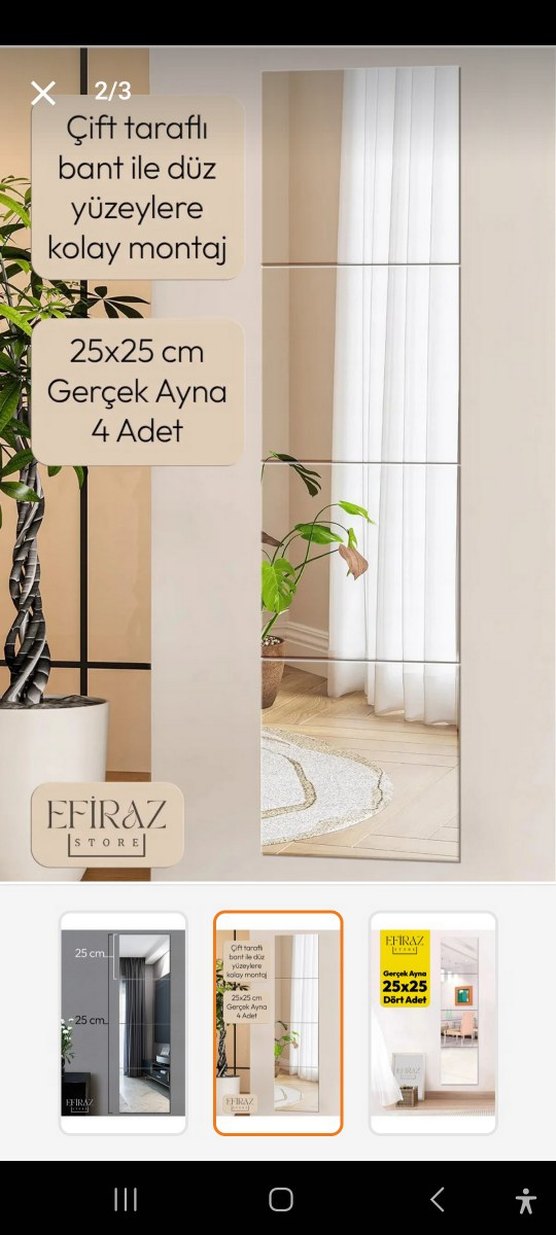 25x25 cm boyutlarında, kolay montajlı 4 adet gerçek ayna seti. Mekanınıza şıklık ve derinlik katar. Marka: EFiRAZ.