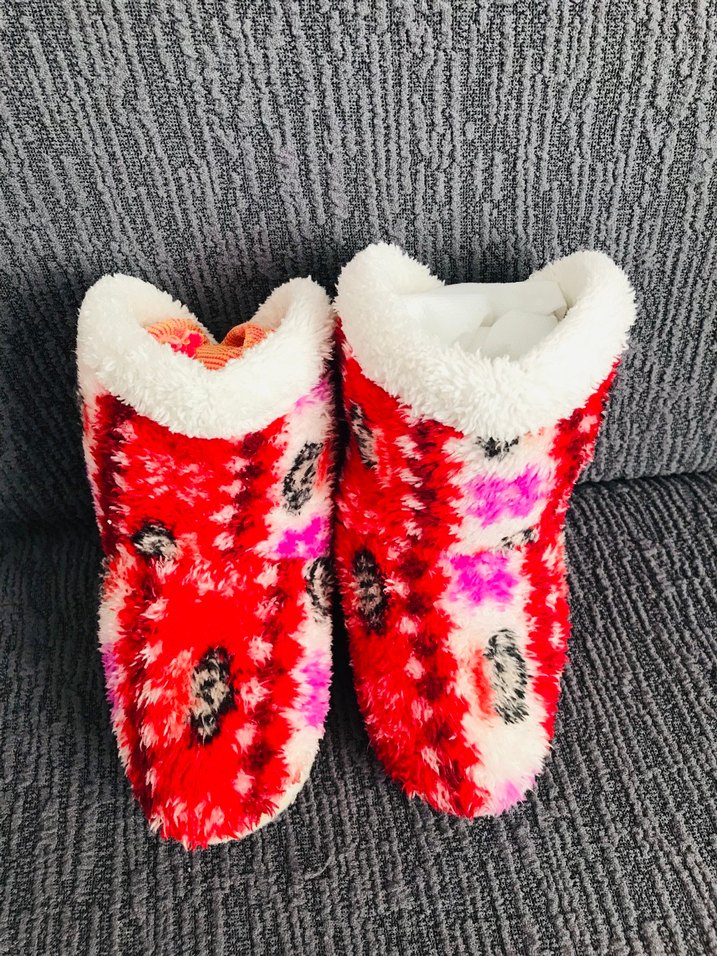 Kızlar için renkli bağlama desenli, kürklü detaylı sıcak terlikler. Bohem ve retro tarzına uygun, yumuşak iç yüzeyli.26/27 Numara kışın sıcacık tutar içi kürklü evde kullanamadık biz kızıma giymek istemedi yepyeni alıcısına hayırlı olsun
