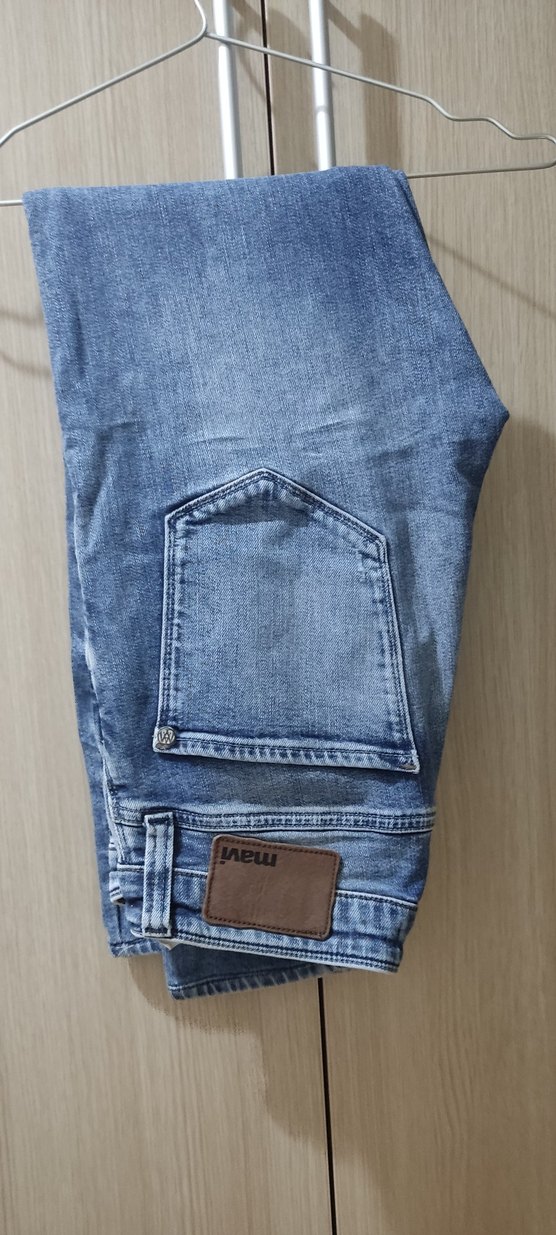 29_30 beden. Erkek Mavi Denim Kemerli Regular Fit Jean