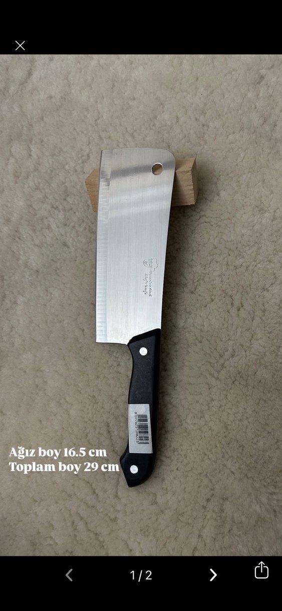 Toplam uzunluğu 29 cm, ağız boyu 16.5 cm olan gri saplı bir satır. Ucunda asma deliği bulunur.