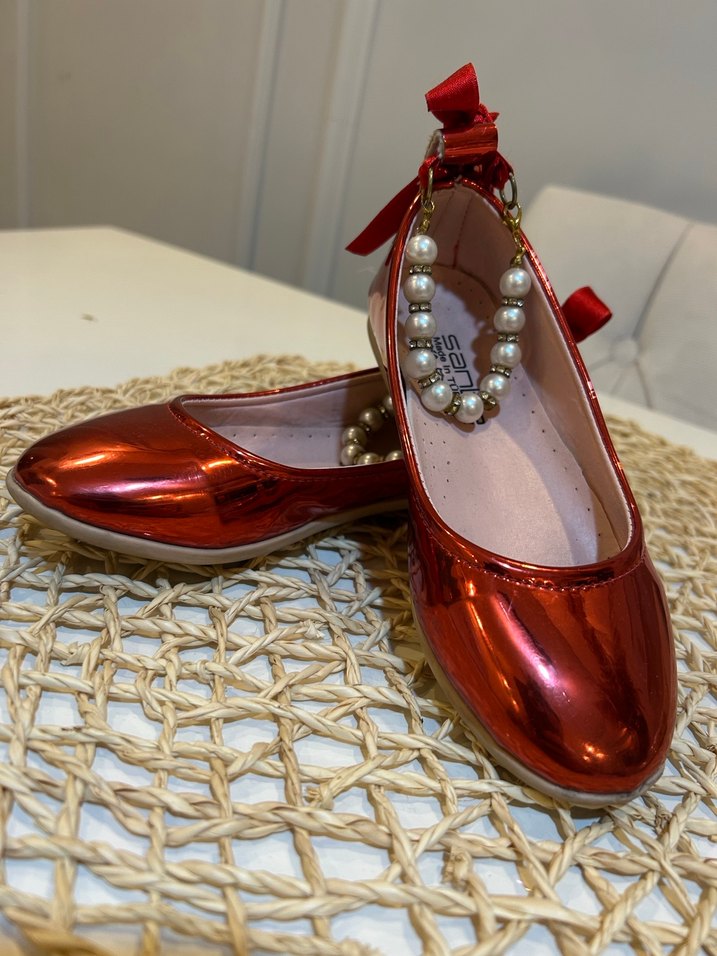 29 numara Kız Çocuk Kırmızı Parlak Boncuklu Babet