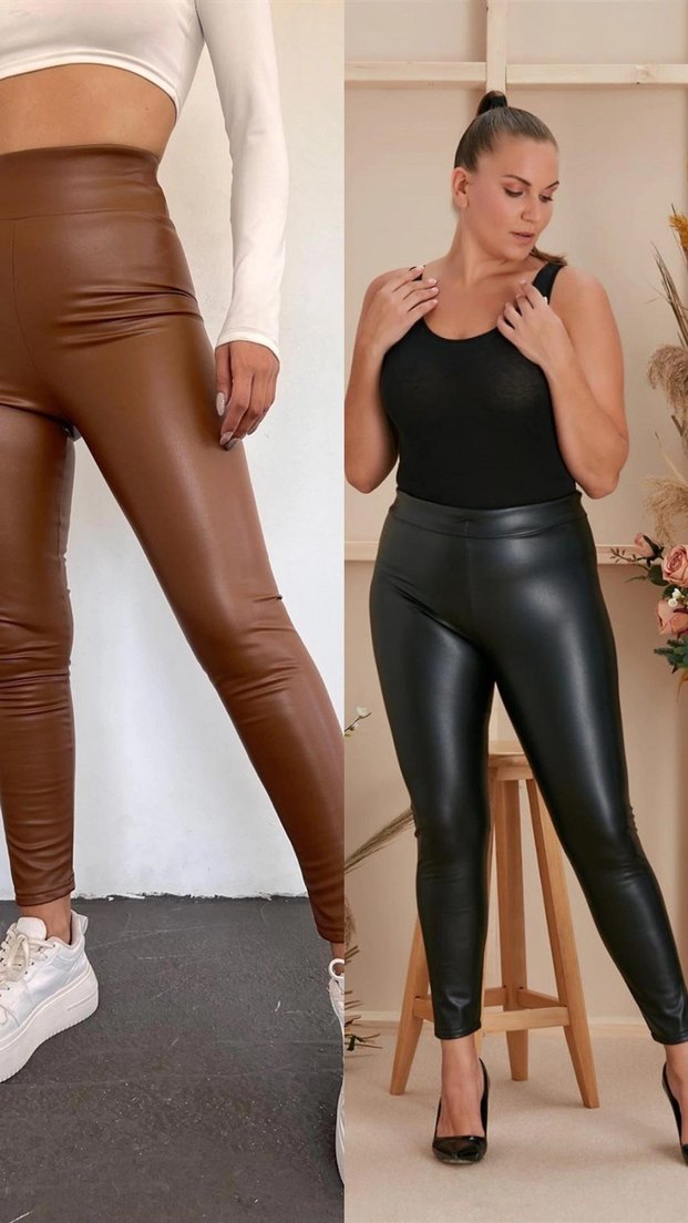 kahverengi renklerde, dar kesim deri görünümlü kadın taytları. Sokak stiline uygun, rahat ve zahmetsiz şıklık sunar. 42 44 beden uyumlu