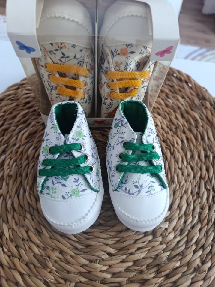 Beyaz tabanlı, renkli çiçek desenli bohem tarzı ilk adım ayakkabıları. özel kutusunda 0-4 ay. ayaklarını soğuktan korur. #ayakkabi #bebek