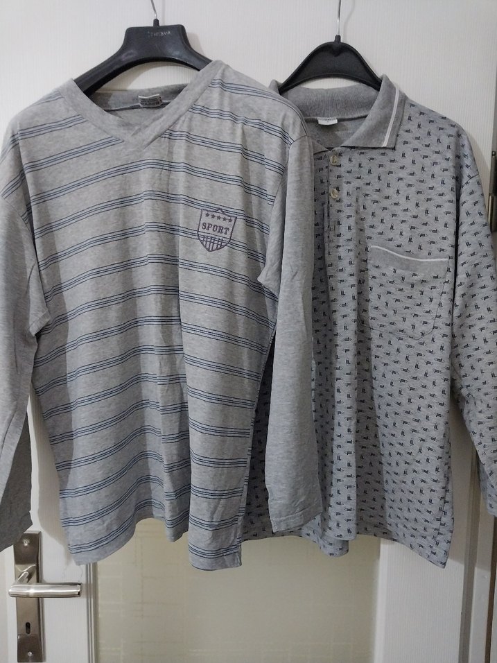 gri renk ikili pijama üstü çizgili olan ince diğeri bi tik kalın