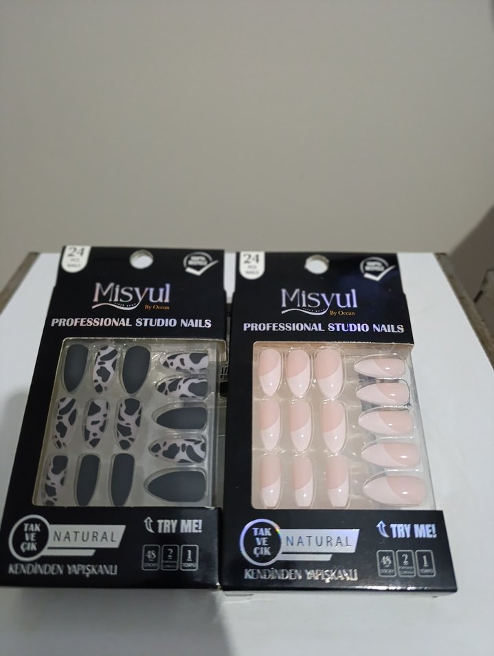 Misyul Profesyonel Stüdyo Tırnak Seti, karışık desenli koyu ve doğal renklerde 24 adet kendinden yapışkanlı tırnaktan oluşur. Uygulaması ve çıkarılması kolaydır.