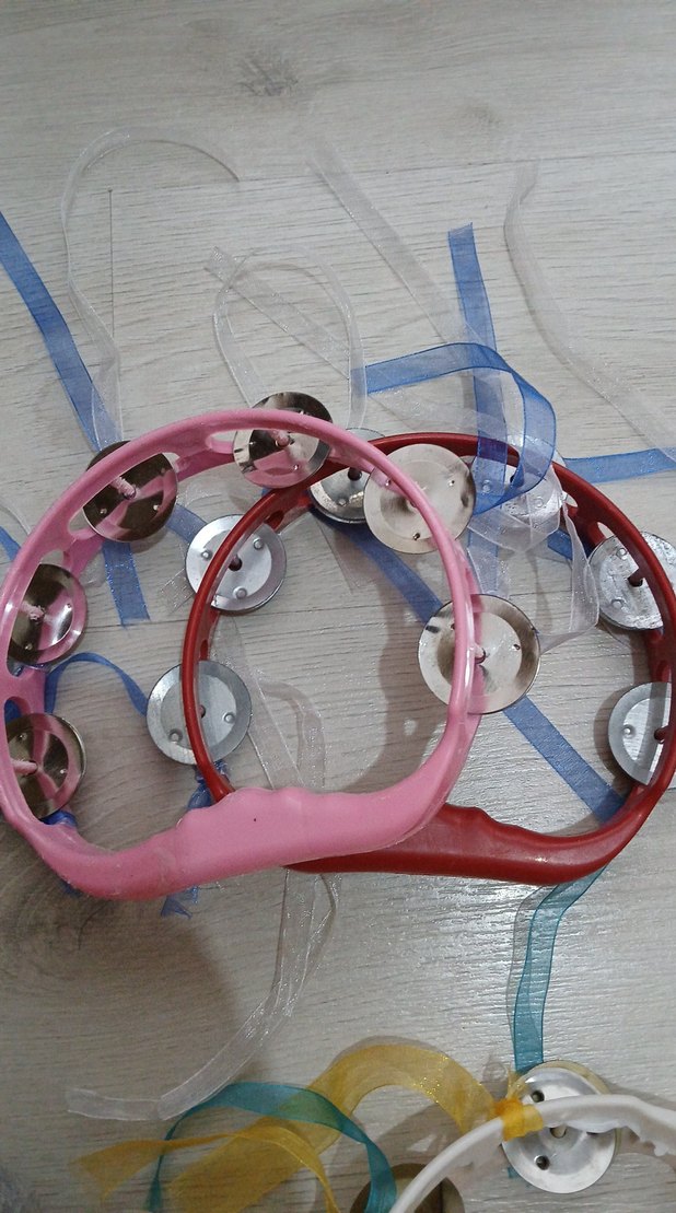 Mavi beyaz kurdalelidir. Renkli plastik saplı, metal zil taneli.