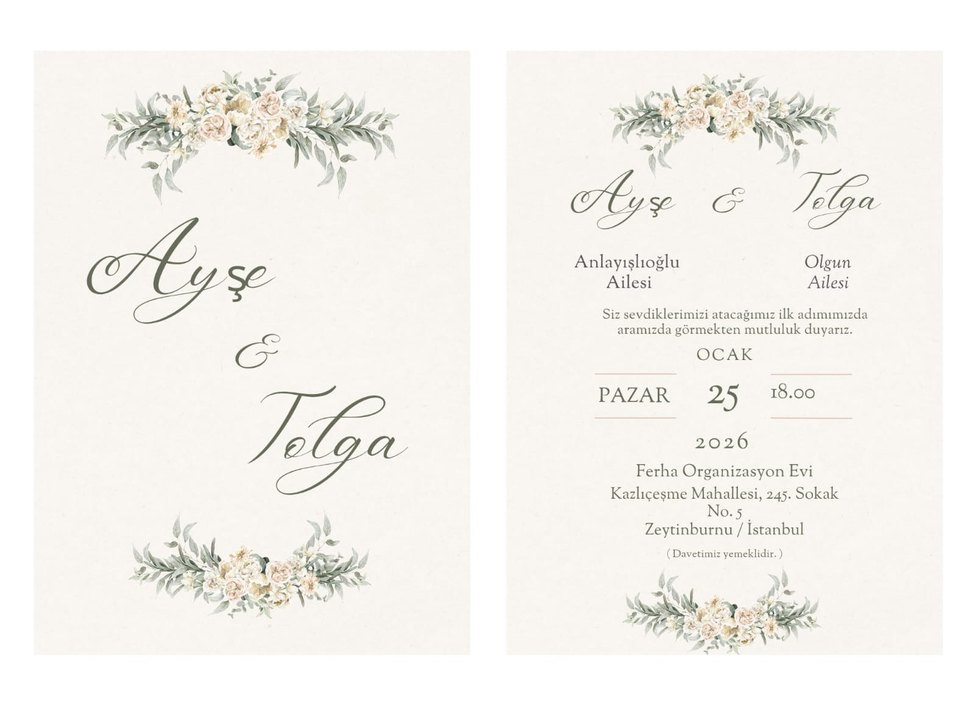 uygun fiyatlı 2li model davetiyelerimiz istenilen adette çıkarılabilir tane fiyatı 5 tl dir miktar arttıkça indirim uygulanır detaylı bilgi icin 0546 120 32 46 numaralı whatsap hattımızdan bize ulaşabilirsiniz