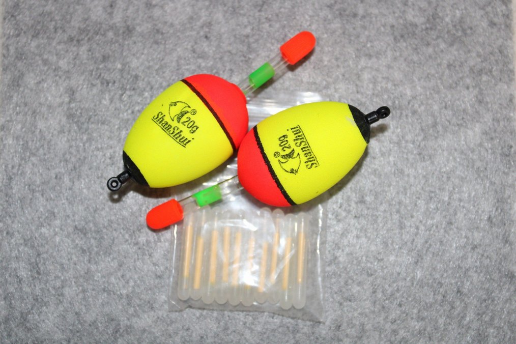 Parlak kırmızı ve siyah detaylara sahip renkli sarı balık tutma şamandıra seti, 10 adet fosfor ile beraber gece avlarınız daha verimli geçecek.