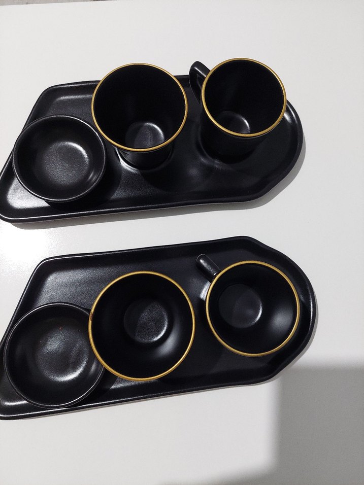 2li Siyah Altın Kenarlı Fincan ve Tabak Seti