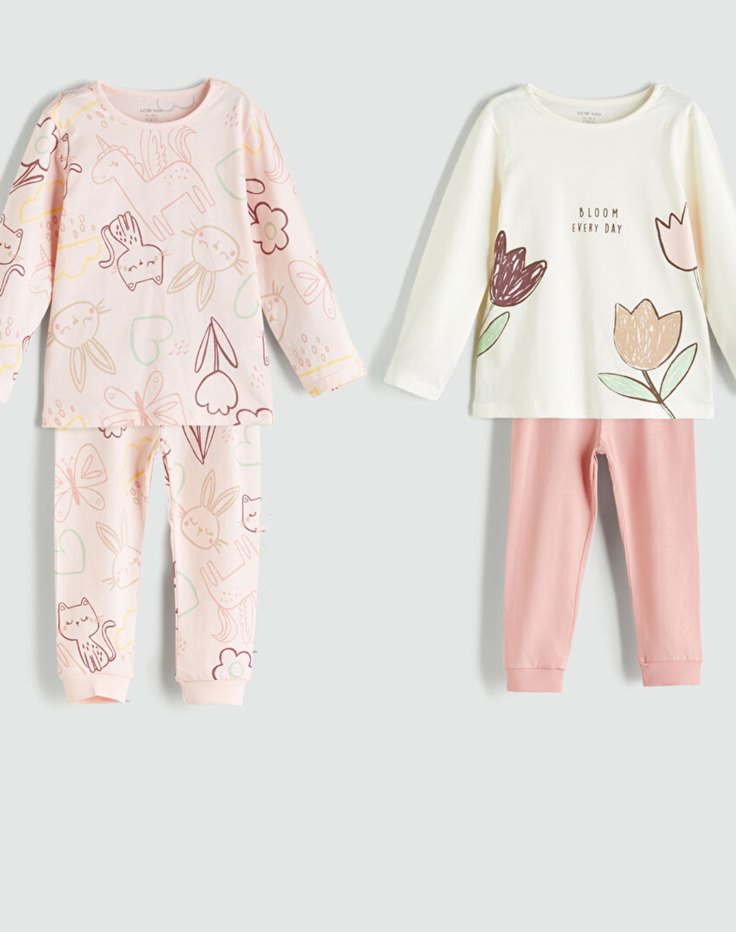 2li Uzun Kollu Baskılı Bebek Kız Takımı