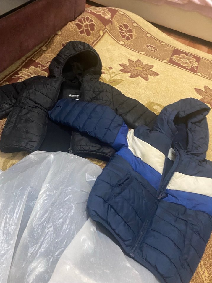 Lacivert renk, kapüşonlu ve fermuarlı, erkek çocuklar için dar kesim mont. Yumuşak ve sıcak kumaştan, sokak tarzına uygun. Pantolonlar gömlekler kazaklar eşofmanlar karışık