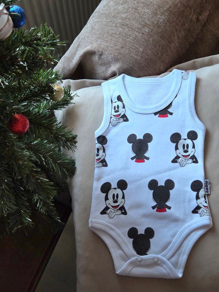 Pamuklu, beyaz, Mickey Mouse desenli renkli erkek bebek zıbın. sıfır ürün. beden bilgisi için ilan açtırabilirsiniz.