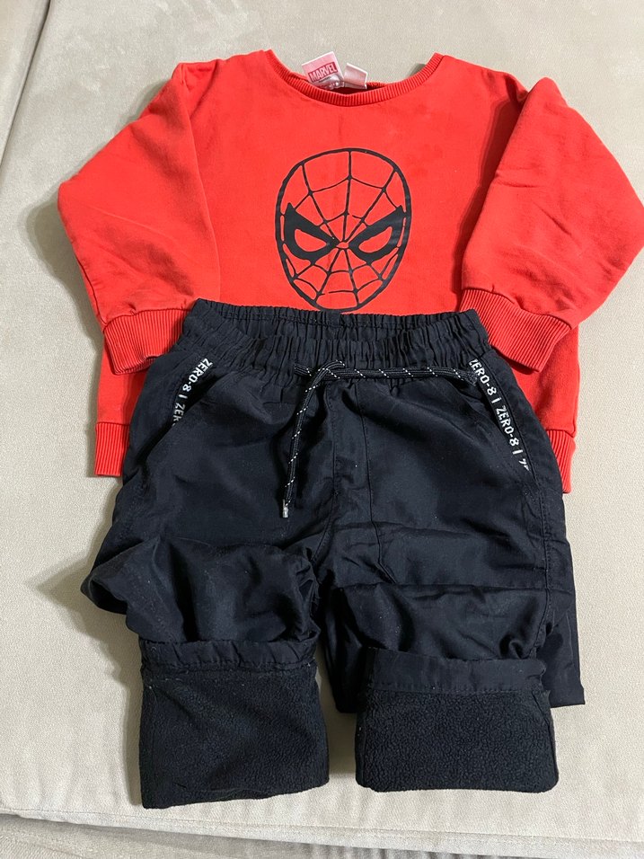 3-4 Yaş Kırmızı Spiderman Sweatshirt ve Siyah Polar Pantolon