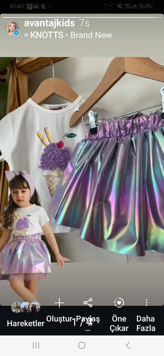Kız çocukları için pamuklu, pastel mor renkte, gevşek kesim ve payetli etek. Parlak görünümüyle pop kültür tarzı sunar.