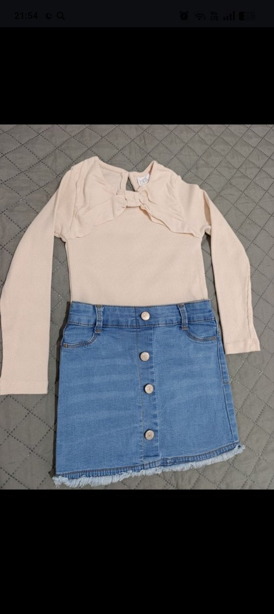 Badi Zara mağazasından alınmıştır 5-6 yaş etiketli ancak kalıbı küçük 3-4 yaşa uyumludur kızıma küçük geldi hiç giyilmedi. kot etek Lcw mağazadan alınmış gibi tertemiz yenidir o da 3-4 yaştır