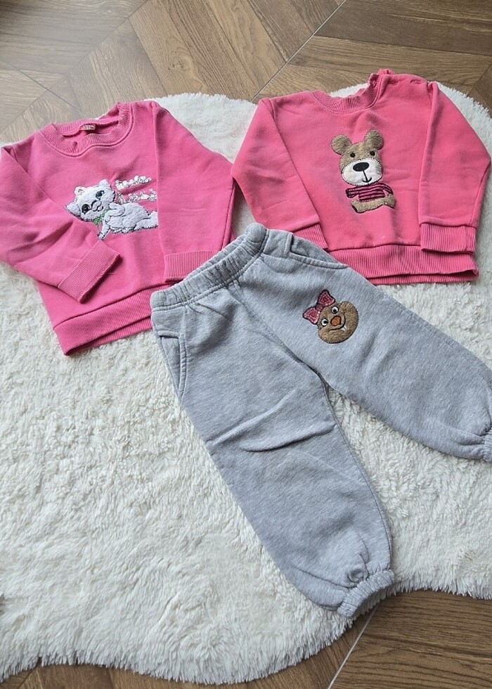 hasarsız, sorunsuz, söküksüz, tertemiz, solma yok 3/4 yaş üçlü takım.desenler baskı değil nakış. #takım #altüsttakım #lcw #lacivert #pantolon #elbise #defacto #h&m #lcwaikiki #panço #elbise #hardal #kızçocuk #kızpijama #kızçocukelbise #etek