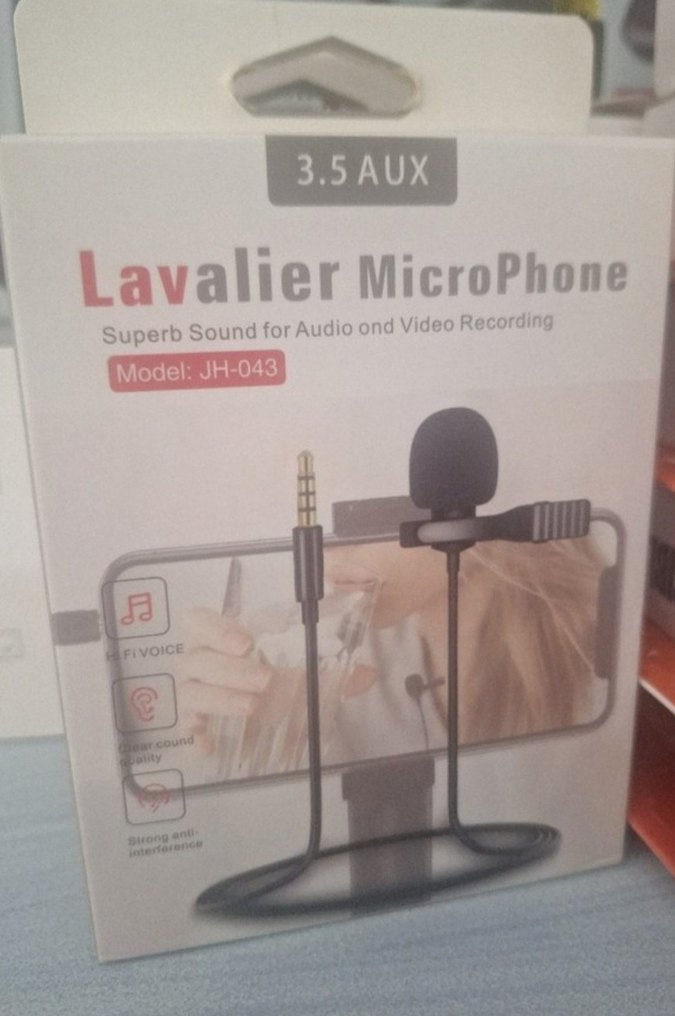 3.5 mm AUX bağlantılı siyah Lavalier mikrofon JH-043, ses ve video kaydı için net ses sağlar.