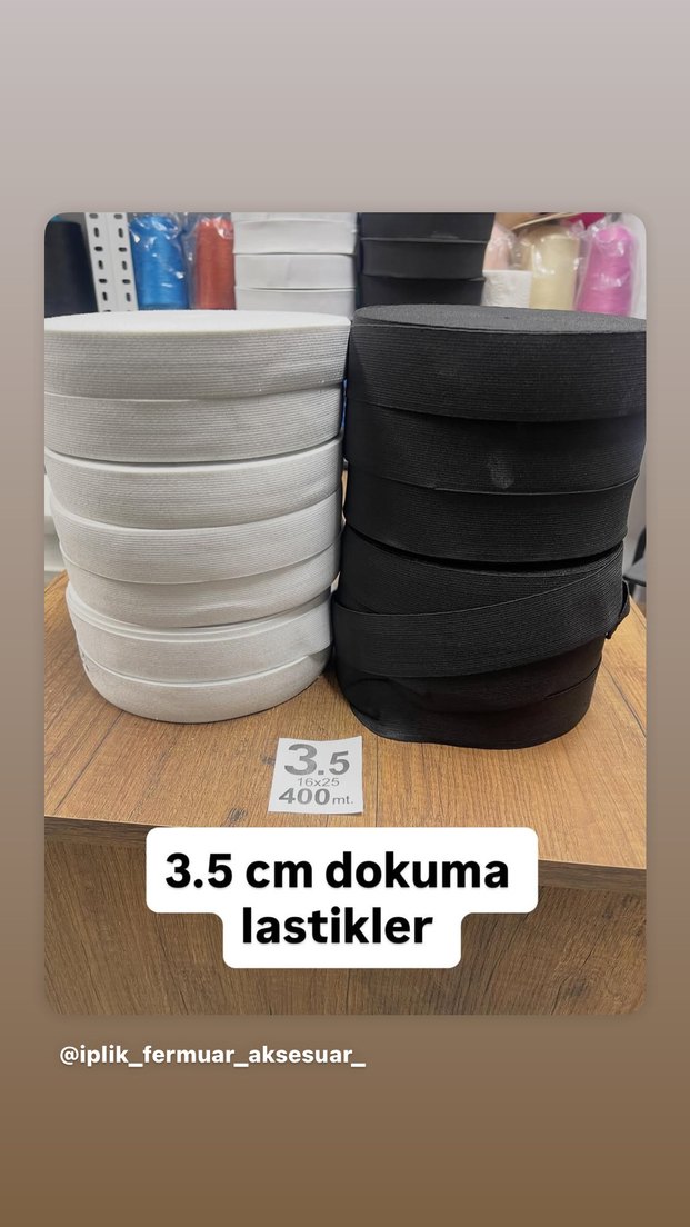 3.5 cm genişliğinde, beyaz ve siyah dokuma lastikler fiyatı 1 top için geçerlidir