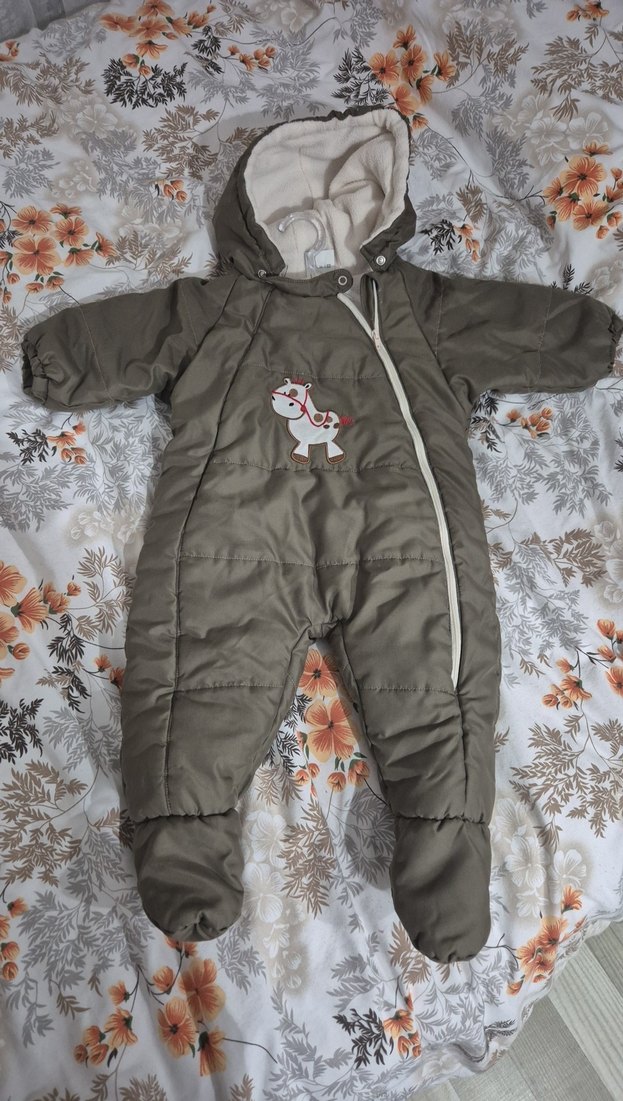 Kapüşonlu, fermuarlı, nakışlı kahverengi bebek tulumu. Yumuşak ve sıcak kumaştan üretilmiştir. Sokak tarzına uygundur. ❄️