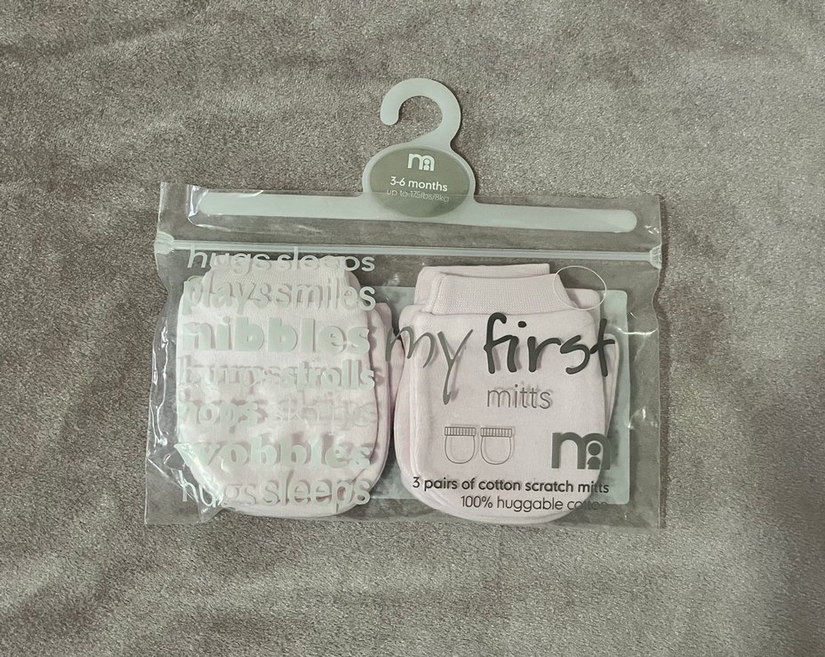 3-6 Ay Gri Bebek Eldivenleri 3'lü Pamuk