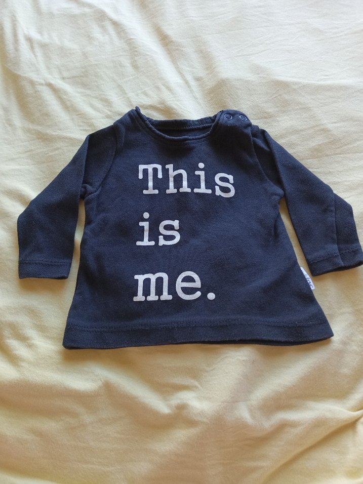 Siyah renkli, uzun kollu pamuklu tişört, gevşek kesim ve yuvarlak yaka. Örgü dokulu, üzerinde baskı yazısı bulunur, günlük kullanıma uygundur.