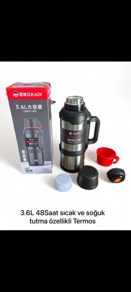 3.6L kapasiteye sahip gri termos, 48 saat sıcak veya soğuk tutar. Tutma özelliği ve farklı kapaklarıyla kullanımı pratiktir.