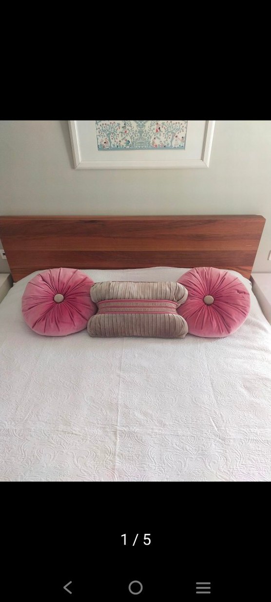 Özel dikim kadife kumaş,leke yirtik gibi sorunlari yok.yikadim temizdir.icleri astarli elyaf dolguludur.dikdortgen olan fermuarli kiliftir.dolabimda baska ilandaki yatak ortusu ile kombinlidir goz atabilirsiniz. Dikdortgen 56x40 Yuvarlaklar 45 cm