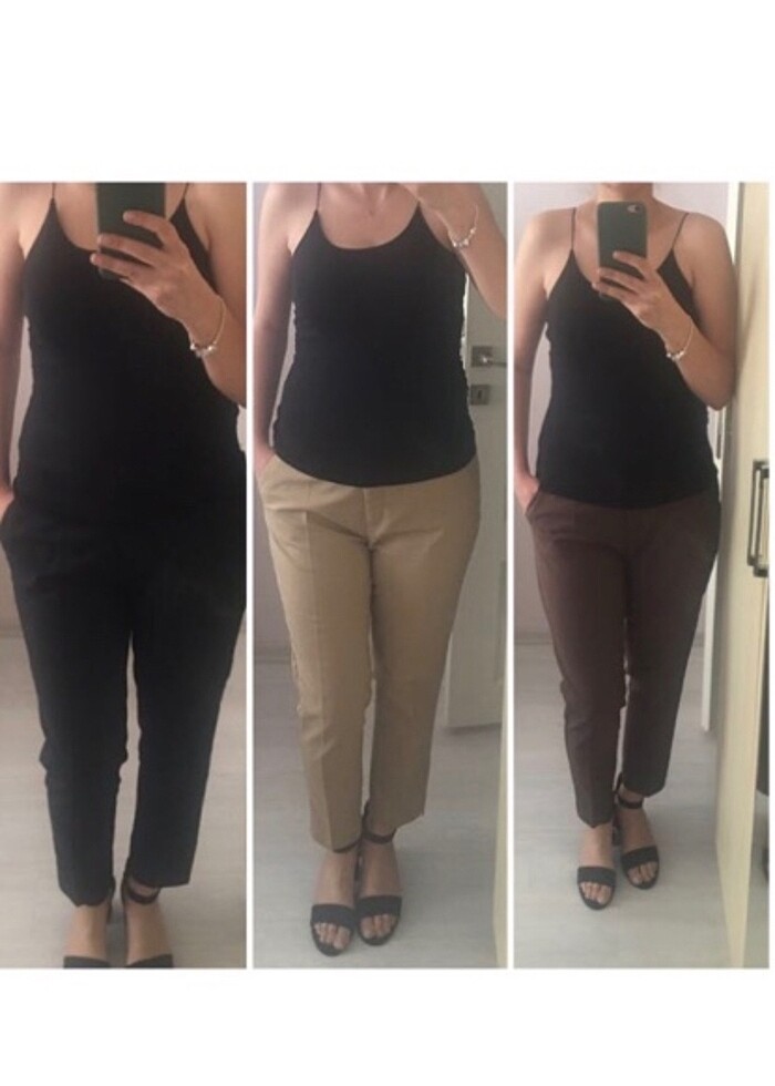 1 tanesi etiketli diğer ikisi birer defa giyildi ben 42 bedenim pantolonlar 44 beden o sebeple satışta defatcto güncel fiyatı 600-700 tl arası
