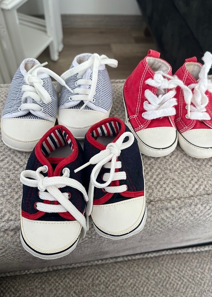 İkisi 4-6 ay converse olan 5-6 aylıktır.yıkadım lacivert kırmızı olanın derisinde atma oldu yırtık yok kullanmaya engel durumları yok adet fiyatı sıfırı350 tl ufak tefe deforme olduğu için yıkamadan çok uyguna koydum çizgili ve converse iyi durumda