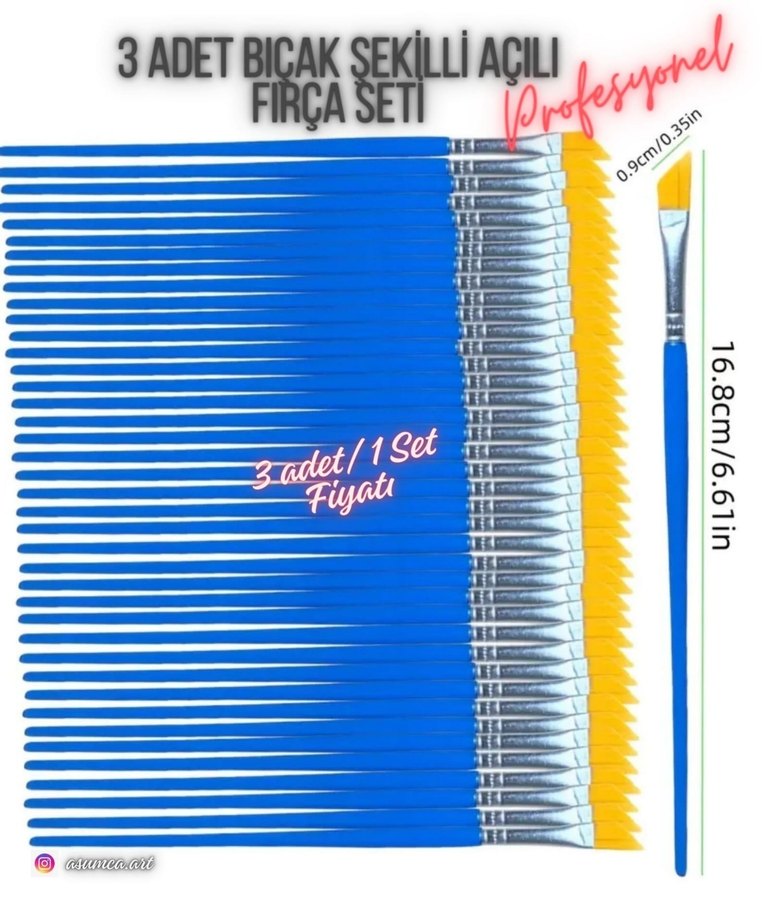 3 adet bıçak şekilli açılı fırça, naylon kıllı fırça, 16.8 cm boyutunda, (profesyonel sanat kullanımı için uygun) 3 adet/ Set fiyatı'dır. Sıfır üründür..