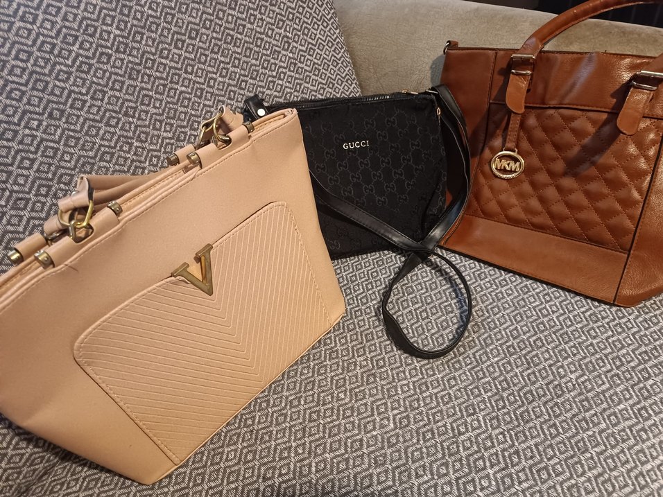 3 Adet Çanta Siyah Baskılı Deri Gucci Omuz Çantası