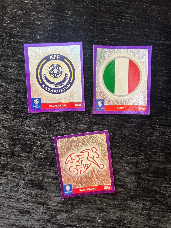 Kazakhstan, İtalya ve İsviçre temalı parlak stickerlar. Her biri metalik yüzeyli canlı tasarıma sahip. Koleksiyoncular ve spor tutkunları için uygun. 5 adet Euro 2024 mor paralel nadir çıkartma