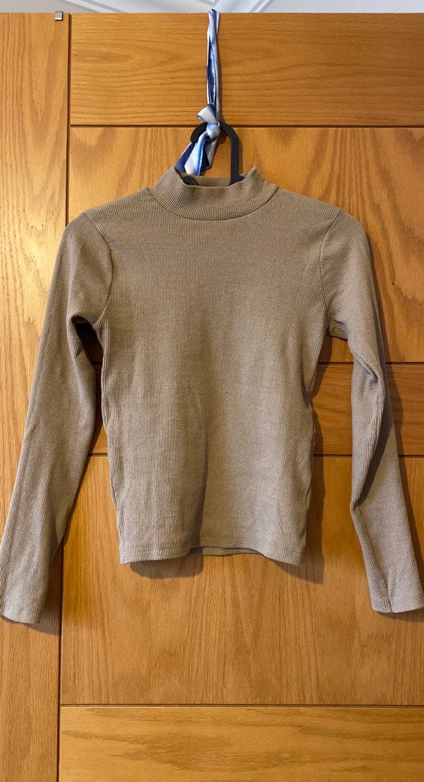 Bej, şaka mavisi ve bordo renkli, balıkçı yaka ve uzun kollu kadın 3 adet bluz.