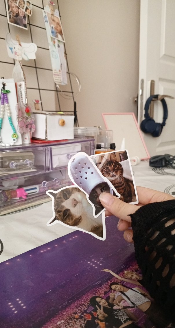 3 adet kedili komik sticker