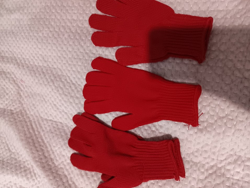 3 adet Kırmızı örme kumaştan, sade ve renkli tasarıma sahip, rahat ve sıcak tutan kadın eldivenleri.