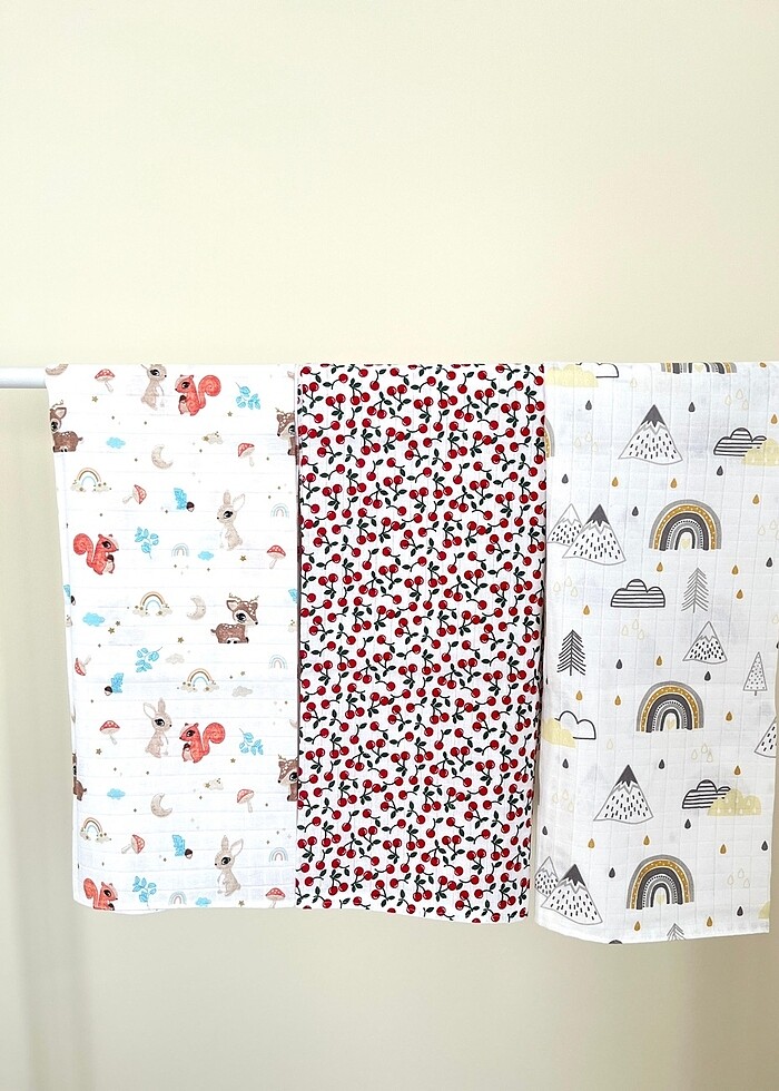 3 adet muslin kumaş bebek battaniyesi set 90*90 cm