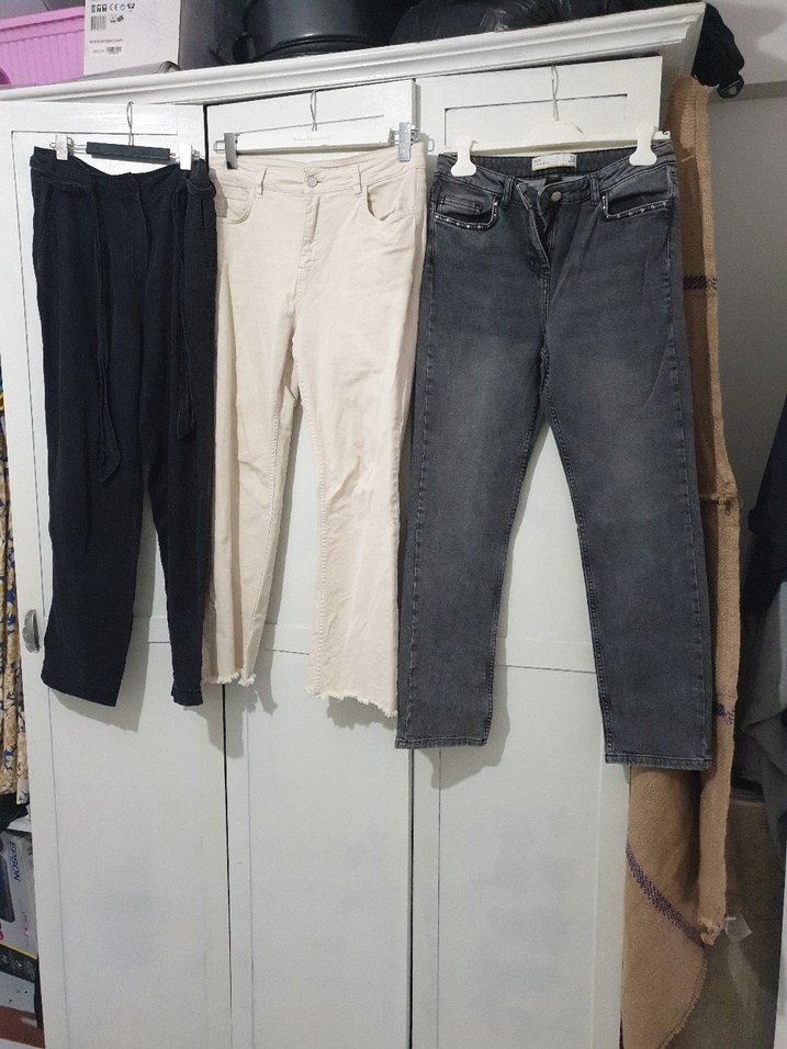 kuşaklı olan İnce Tiril Tiril kot benzeri modal 38 beden ortadaki mudo'nun 42 beden likralı pantolonu kalın keten Pamuklu ADR antrasit gri olan kot pantolon zımba detaylı ceplik kenarları 38 beden gri olan hiç giyilmedi mudo'nunki bir müddet değildi modal olan pantolon 1-2 kez kullanıldı