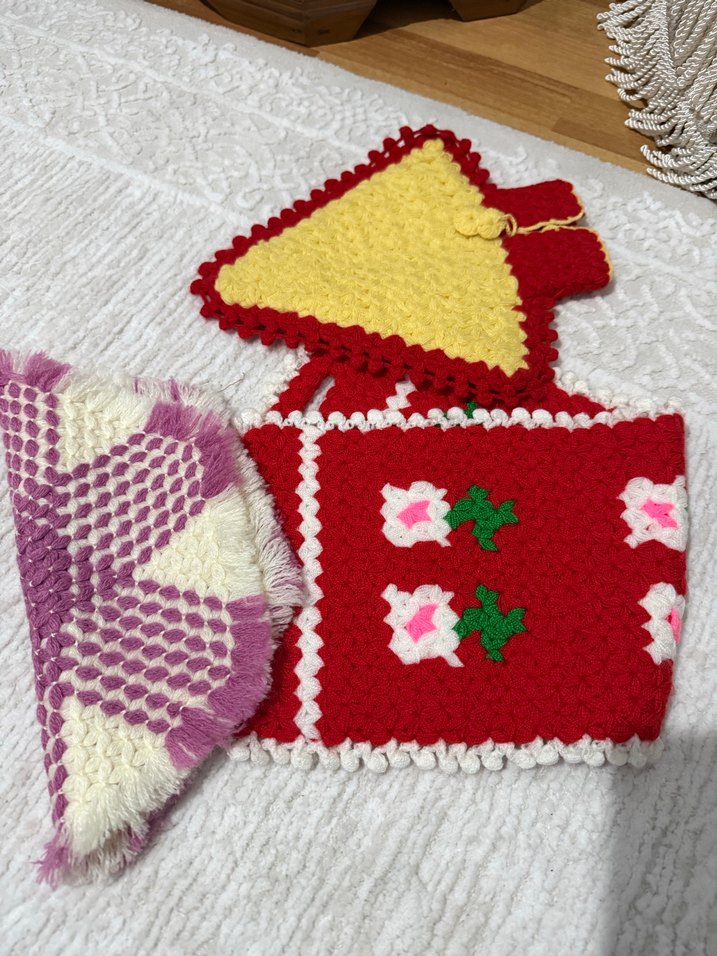 Çeşitli şekil ve desenlerde, renkli örgü banyo süngerleri, nazik temizlik için uygundur.