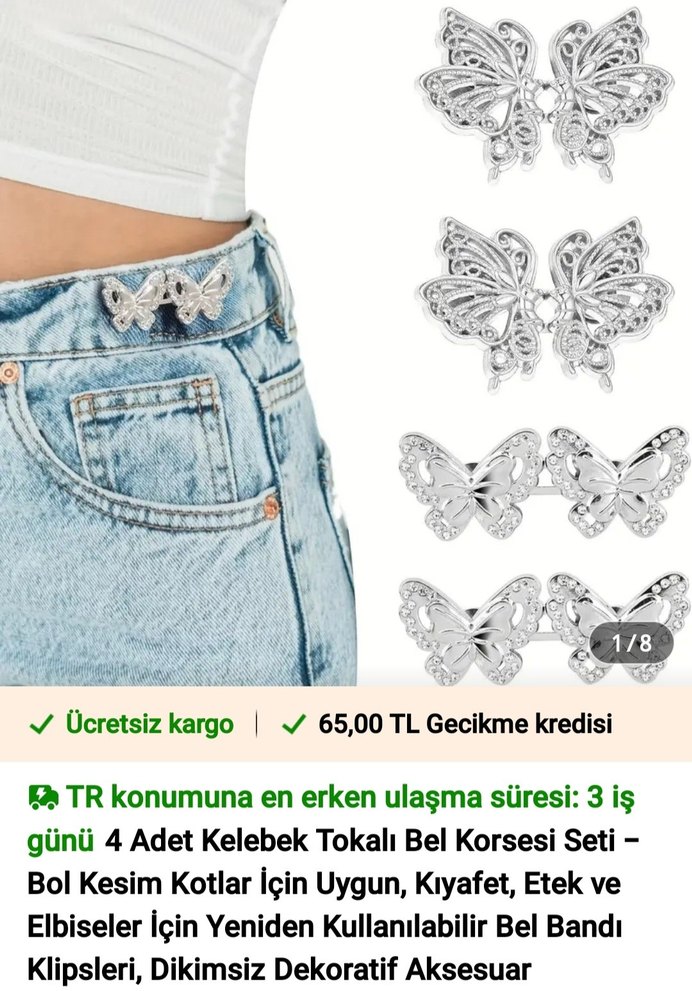 3 Adet TAŞLI KELEBEK BROŞ ve BEL DARALTMA SETİ
