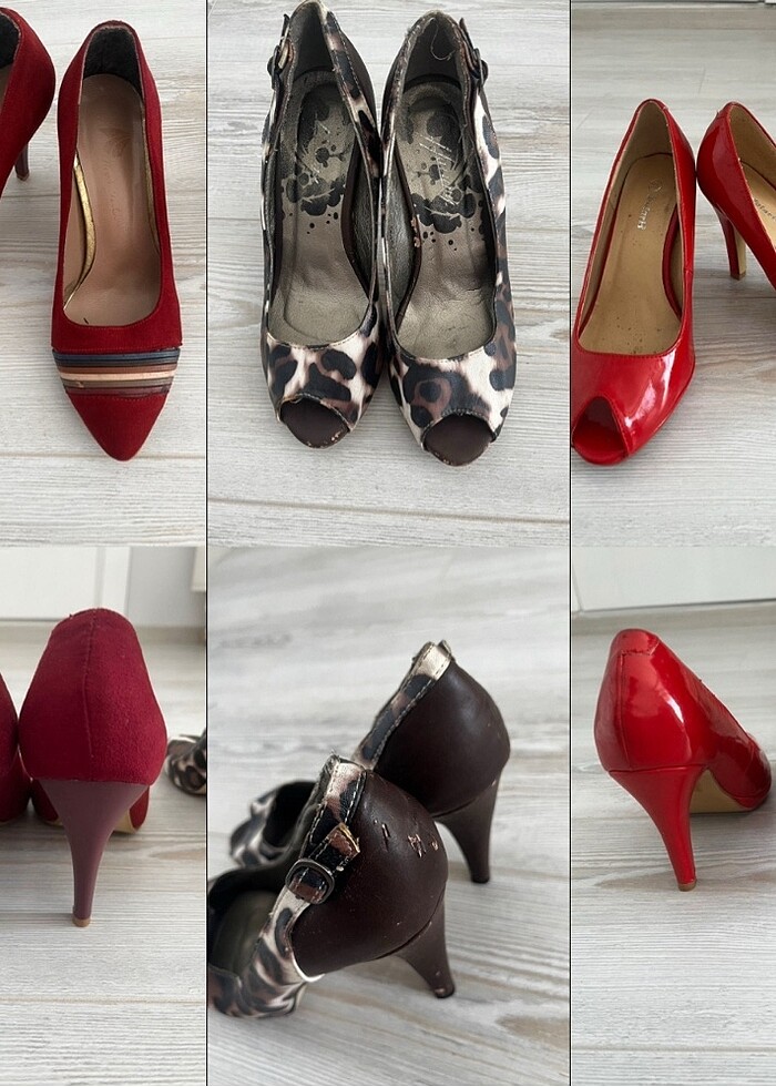 3 çift topuklu ayakkabı ücretidir, defoları gösterildi.