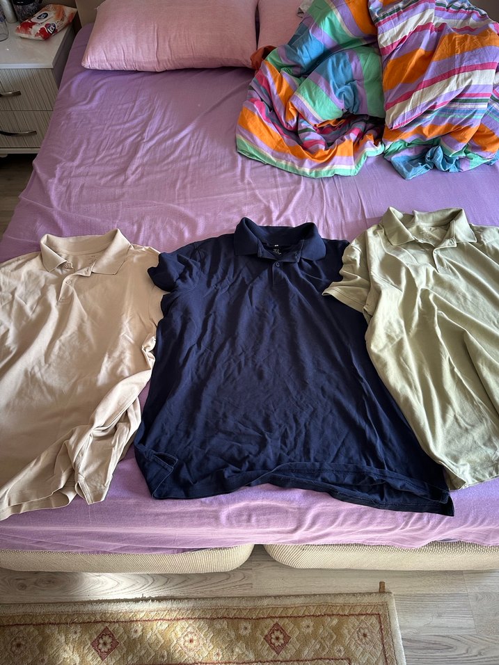 3 adet Xl Polo Yaka H&M T-Shirt,çok az giydim,kilo verdiğim için satıyorum. 1.77-73 kgyim şu an bol oluyor. Haki,Bej ve Lacivert renkleri,ürünler hasarsızdır.