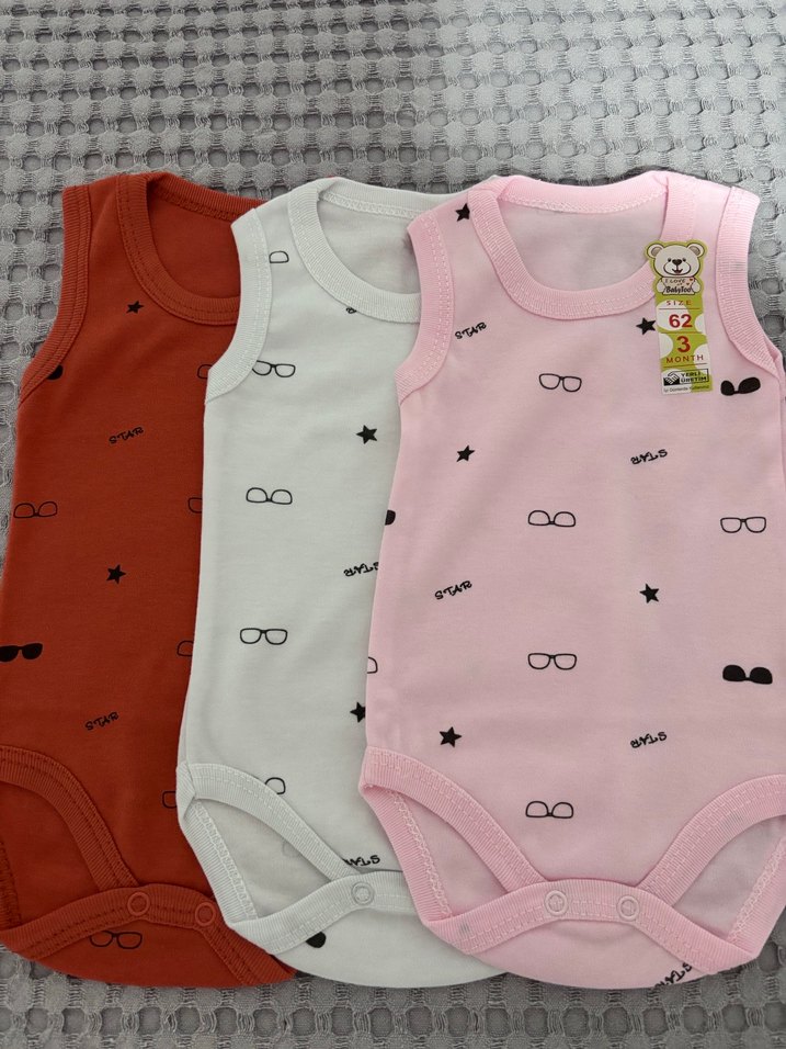 3 aylık 62 cm. Kolsuz Bebek Kız Body, Renkli Baskılı