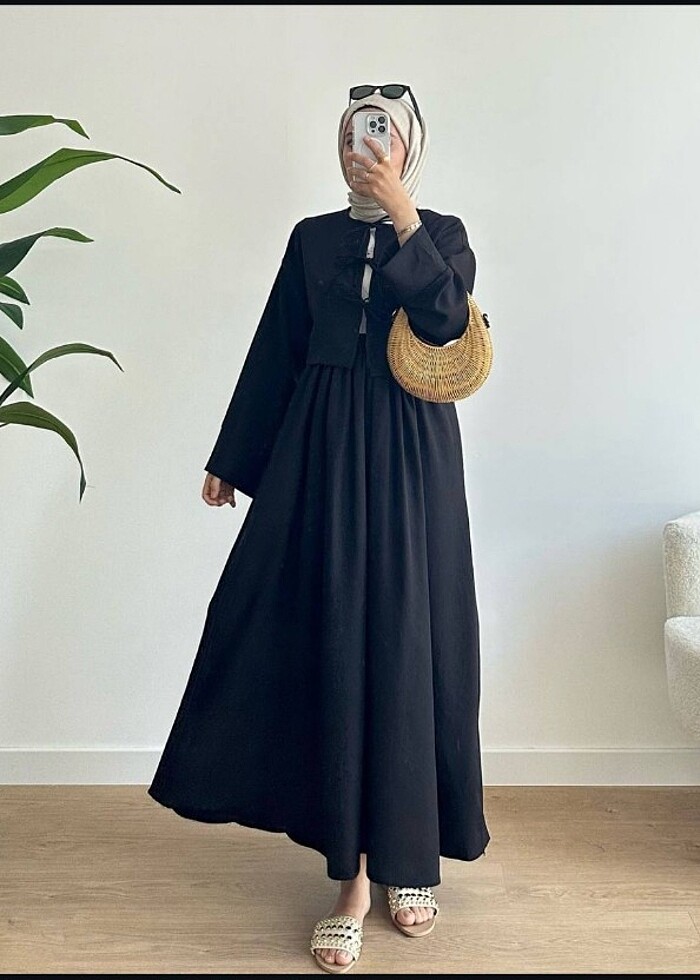 3 Bağlamalı Keten Siyah Renk İkili Takım