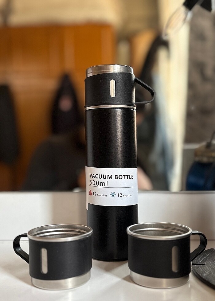 500 ml 12-16 saat soğuk ve sıcak tutma özellikli 3 bardaklı termos(marka temsili)