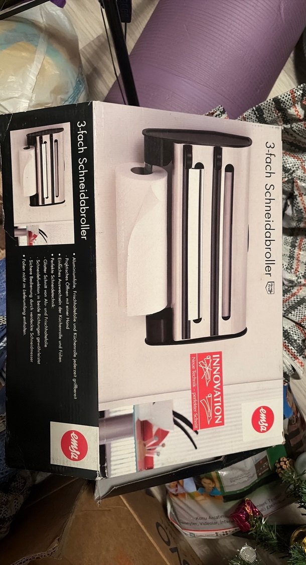 3 bölmeli kesme rulosu, gri ve beyaz renkte, farklı rulo tiplerini düzenleyip kesmek için kullanılır. ️