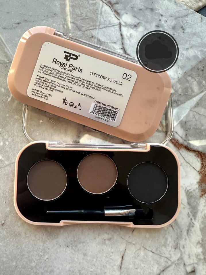 Royal Paris kaş pudrası, koyu kahverengi tonlarda ve küçük aplikatör fırçasıyla kaşları belirginleştirmek için idealdir. Üç uyumlu renk içerir. ️