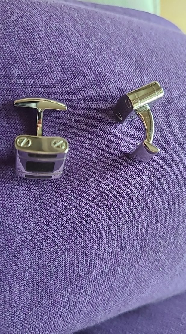 Diğer çoğu kol düğmelerinin aksine eğimli bağlantısı rahat kullanım saglar Kenarlarında 2 adet vida görünümlü kabartma motifli Paslanmaz çelik Ön yüzünde pencerenin içinde zincir görünümlü detaylara sahip, gümüş renkli erkek kol düğmeleri. Çağdaş iş tarzına uygun, parlak ve şık tasarım.
